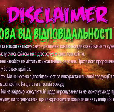Приймаючи цю угоду, Ви тим самим підтверджуєте, що Вам більше 18 років, і Ви ознайомлені із законодавством у сфері регулювання обігу наркотичних засобів.