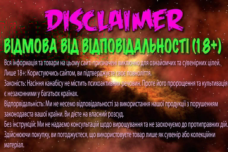 Виходячи із зазначеного, Ви несете повну особисту відповідальність за будь-які дії, що вчиняються в подальшому, з придбаним насінням.